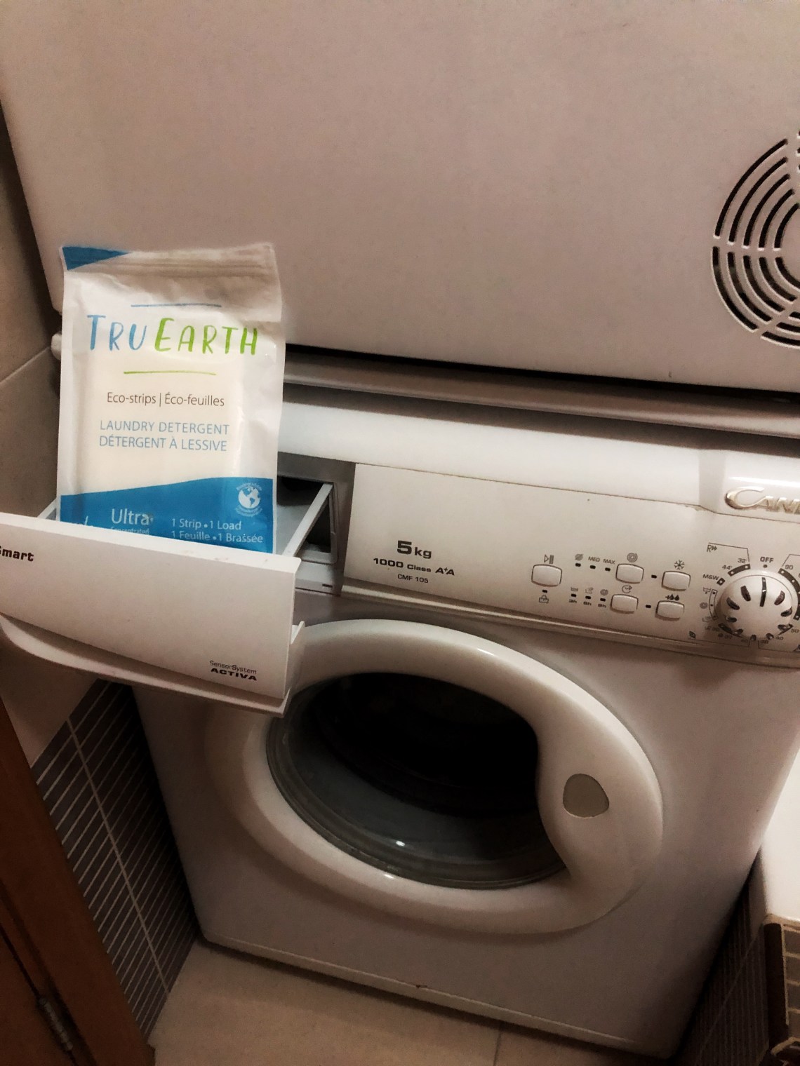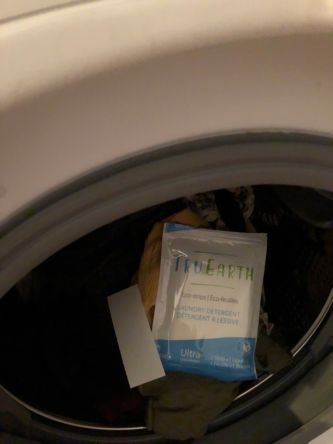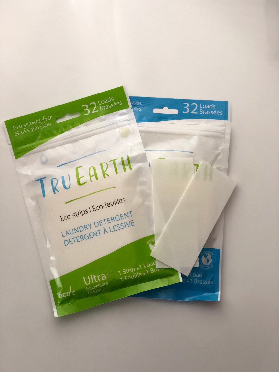 Mais loin de moi l’idée de vous faire la leçon; je suis bien mal placée… Et un domaine dans lequel j’échoue royalement, c’est dans l’utilisation de produits nettoyants écologiques. J’en ai testé une seule fois dans ma vie, il y a plusieurs années, et je ne sais pas si c’était psychologique, mais j’avais l’impression que ça ne nettoyait pas. J’étais donc un peu réticente à l’idée de tester le détergent à lessive écologique, en éco-feuilles en plus, de l’entreprise écoresponsable canadienne Tru Earth! De quessé? Des bandelettes? En partant, j’entretenais un bon doute quant aux résultats possibles…